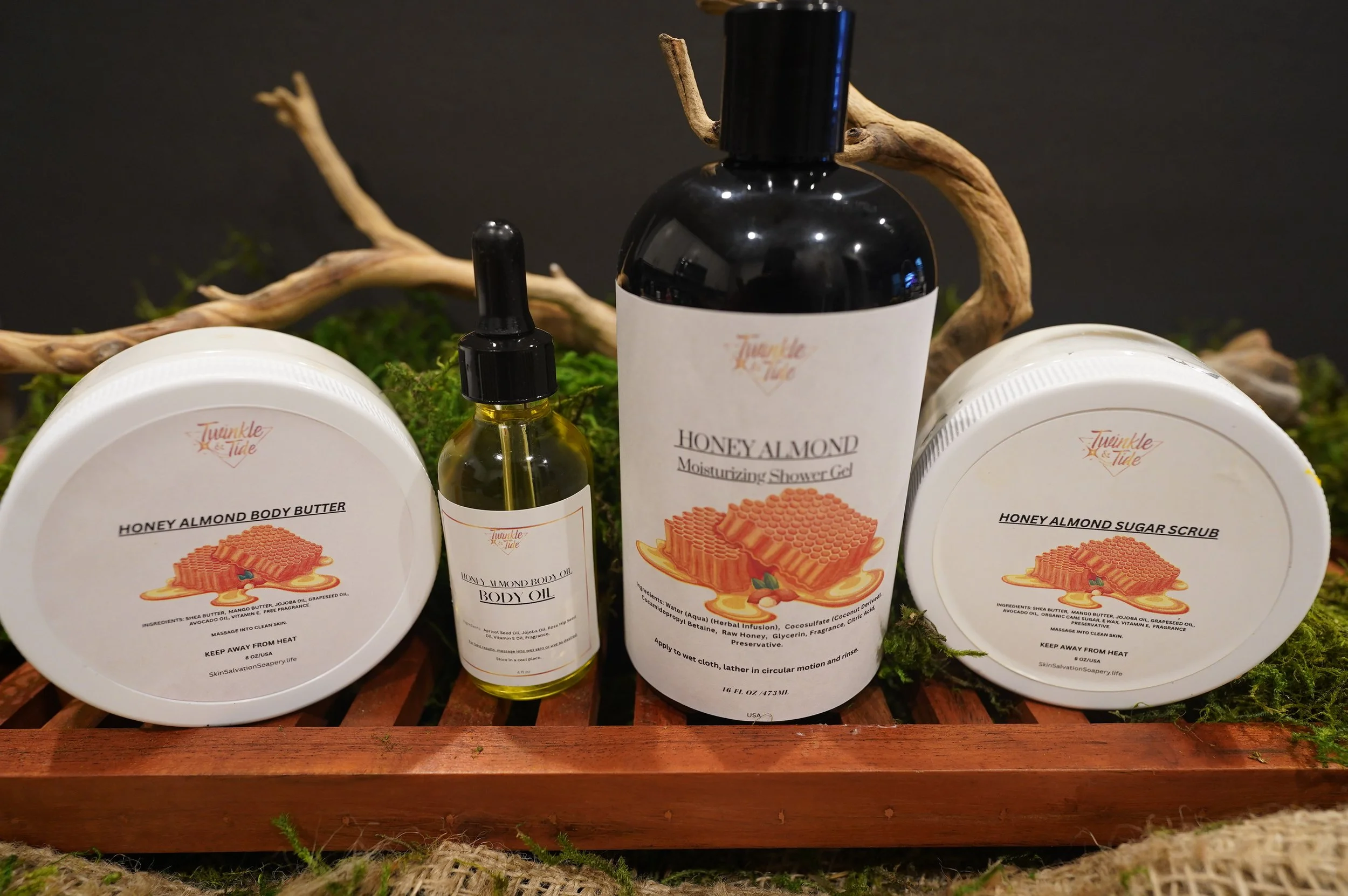 Elevate your bath time ritual with the silky richness of our Honey Almond shower gel, letting its golden elixir cascade over your skin. Take the aromatic scent of Golden Honey and Almonds in the warmth of the steam, lifting the senses and creating a moment of pure, uninterrupted bliss.